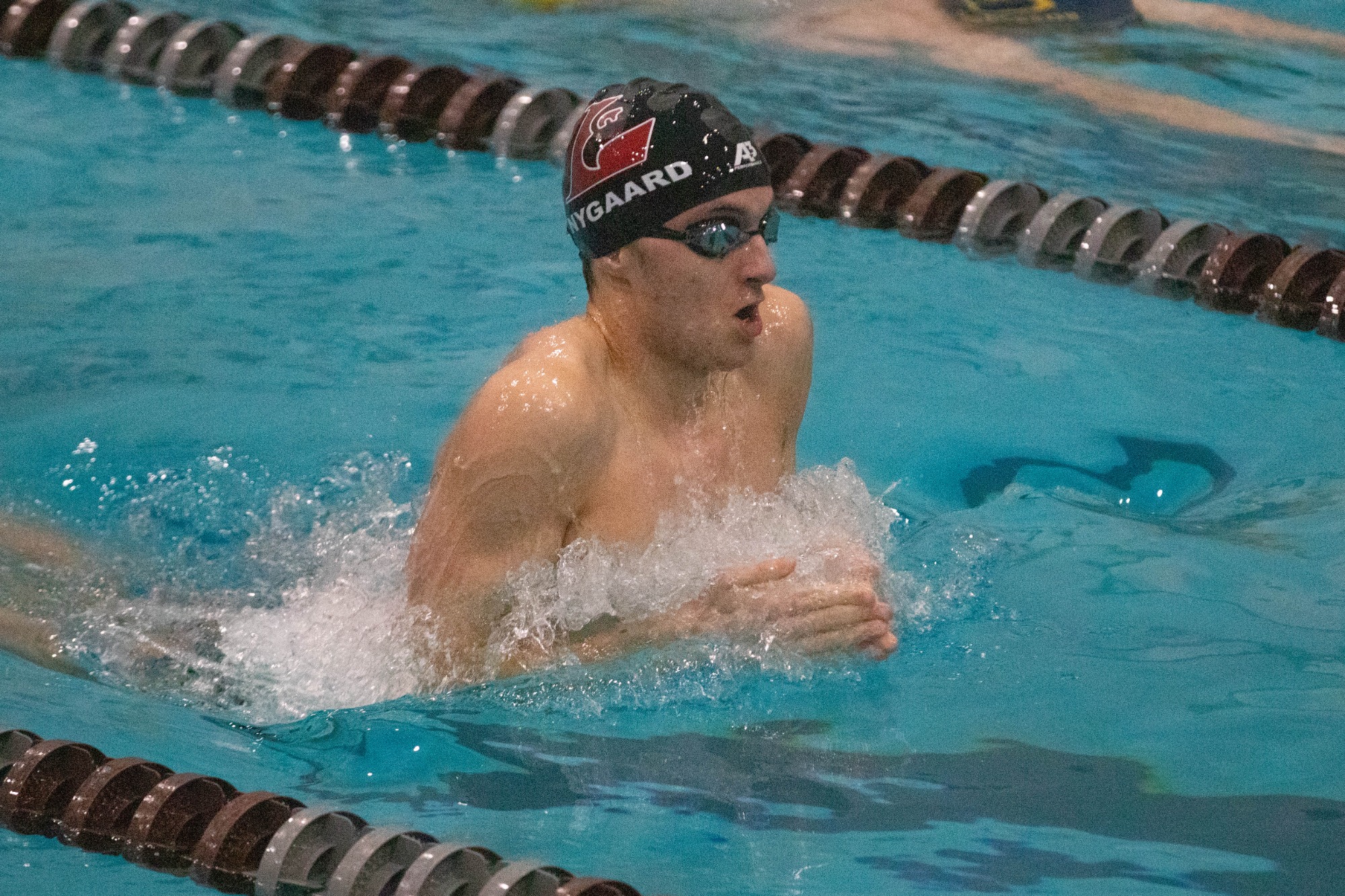 Gabe DeWald sixth (2:06.89) in the 200 breaststroke along with Nygaard's first-place finish.
